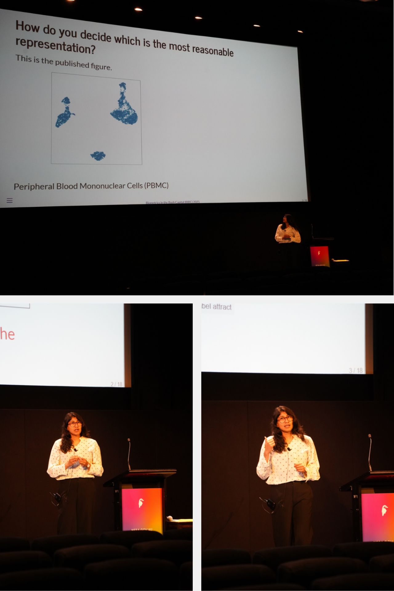 I attended my first JSM conference and had the opportunity to present both a lightning talk and an electronic poster (E-poster). My presentation, titled Visualise your fitted non-linear dimension reduction model in the high-dimensional data space, focused on developing a method and software to visualise how NLDR warps the data. It was a rewarding experience to share my work and engage with the wider statistical community.